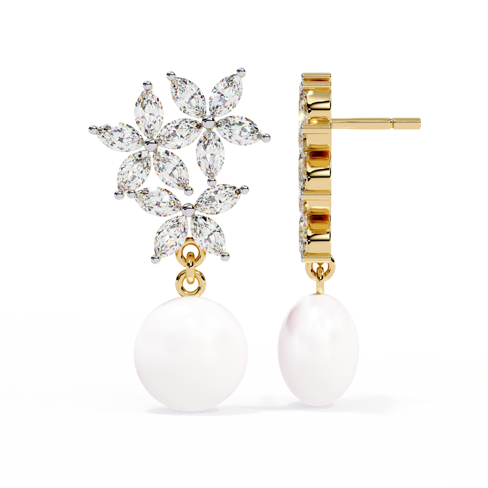 LGD Ear Studs Marquise Stone (2.40ct Pair ) In 14K Gold