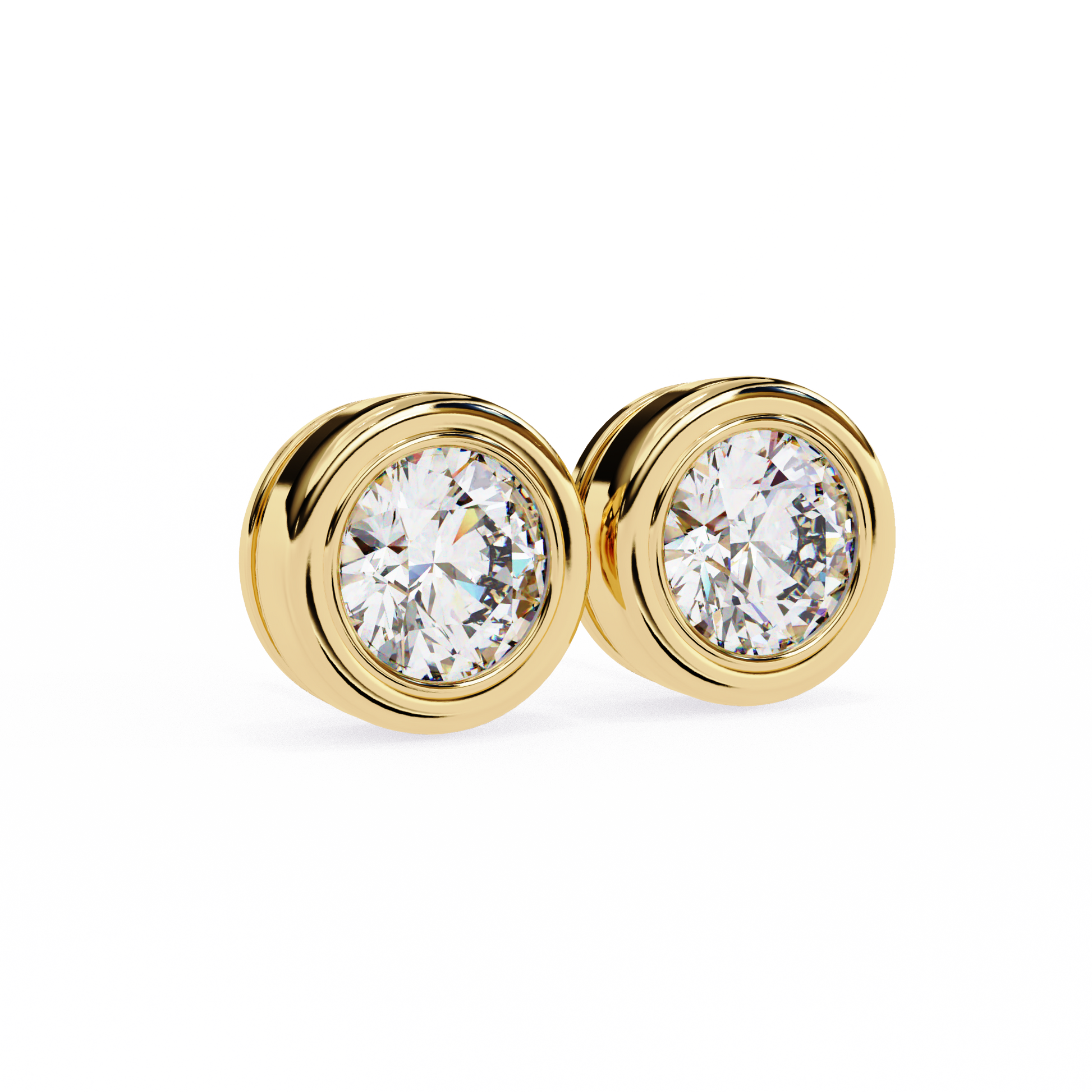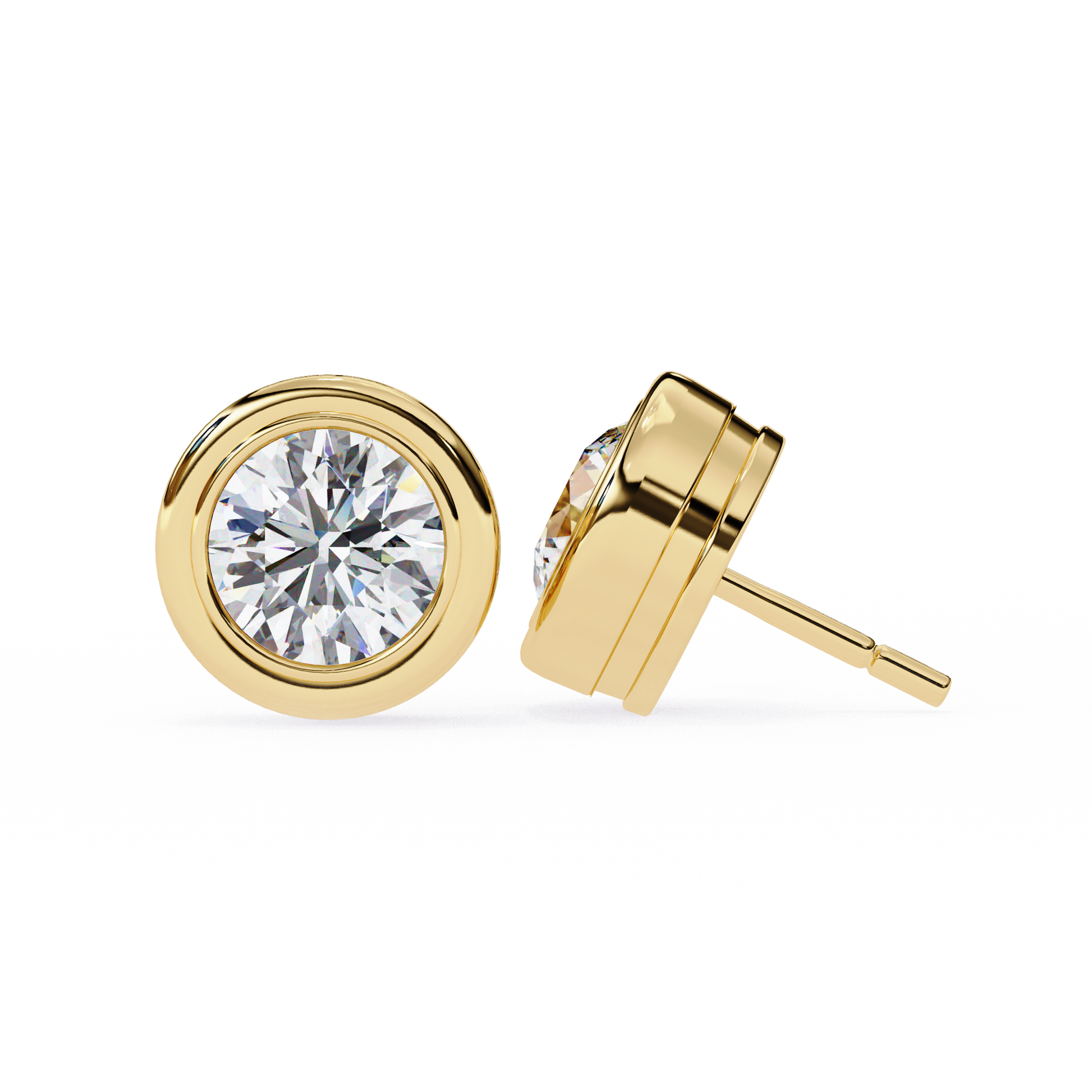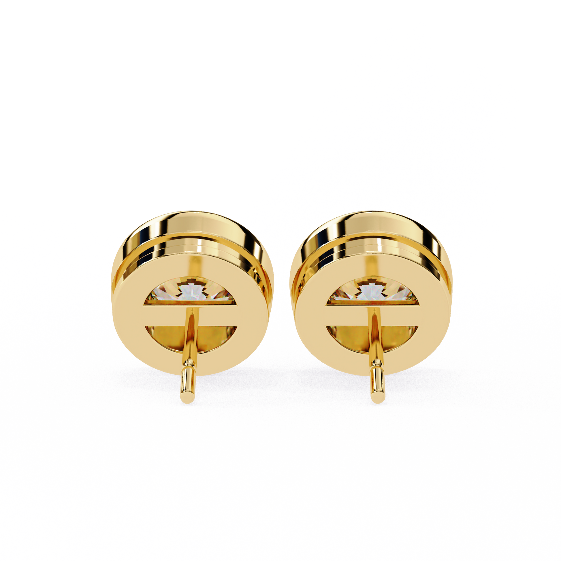 Lab Grown Ear Studs Round Stone In 14K Gold