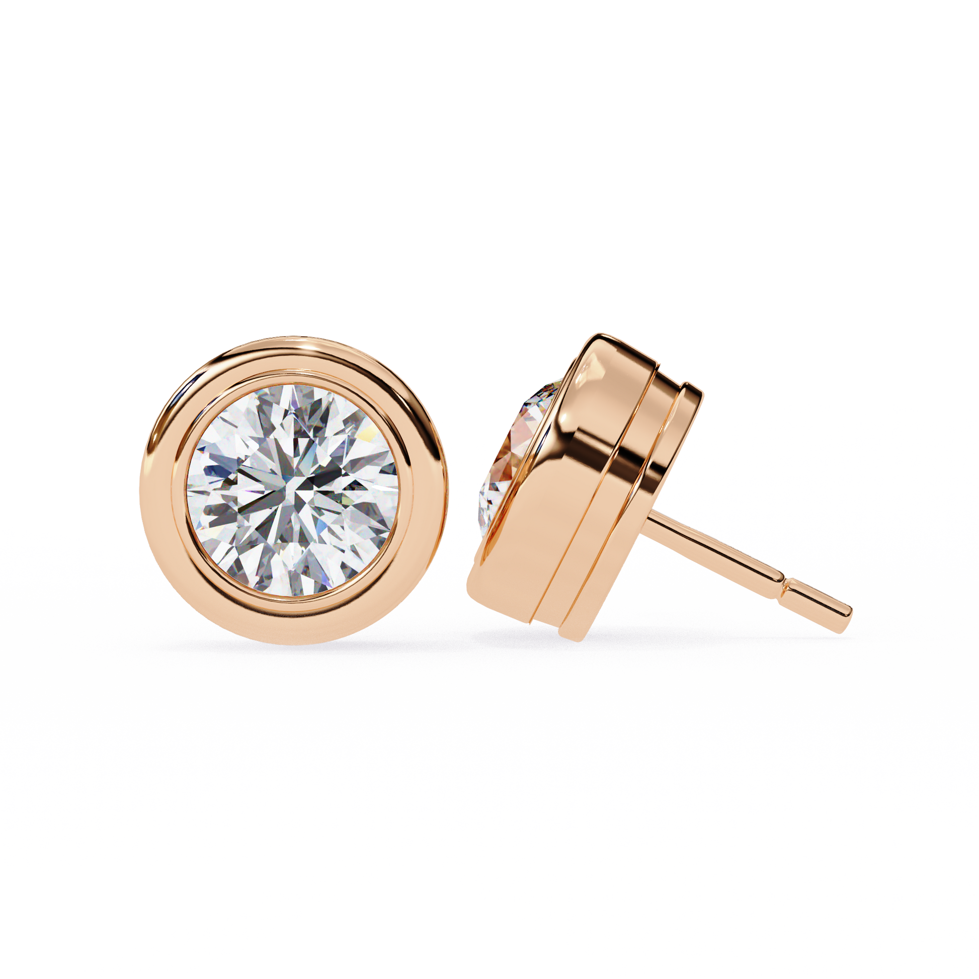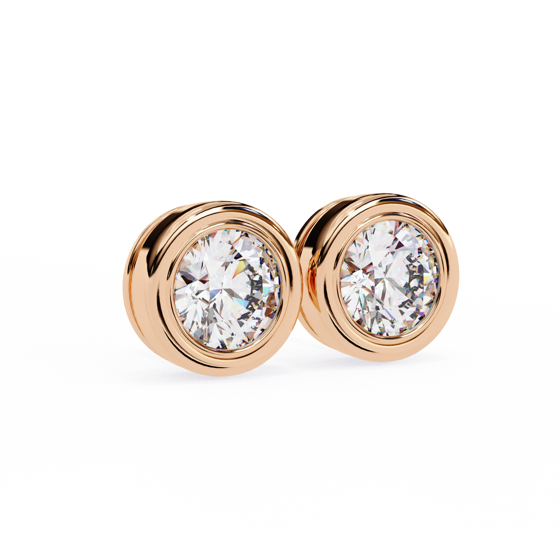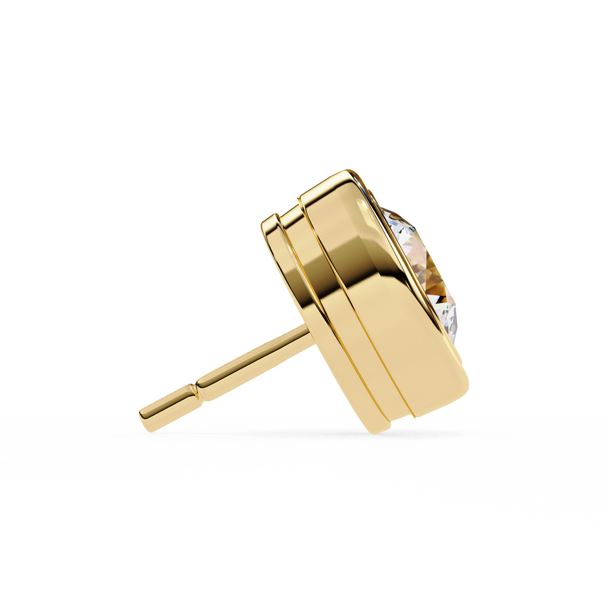 Lab Grown Ear Studs Round Stone In 14K Gold
