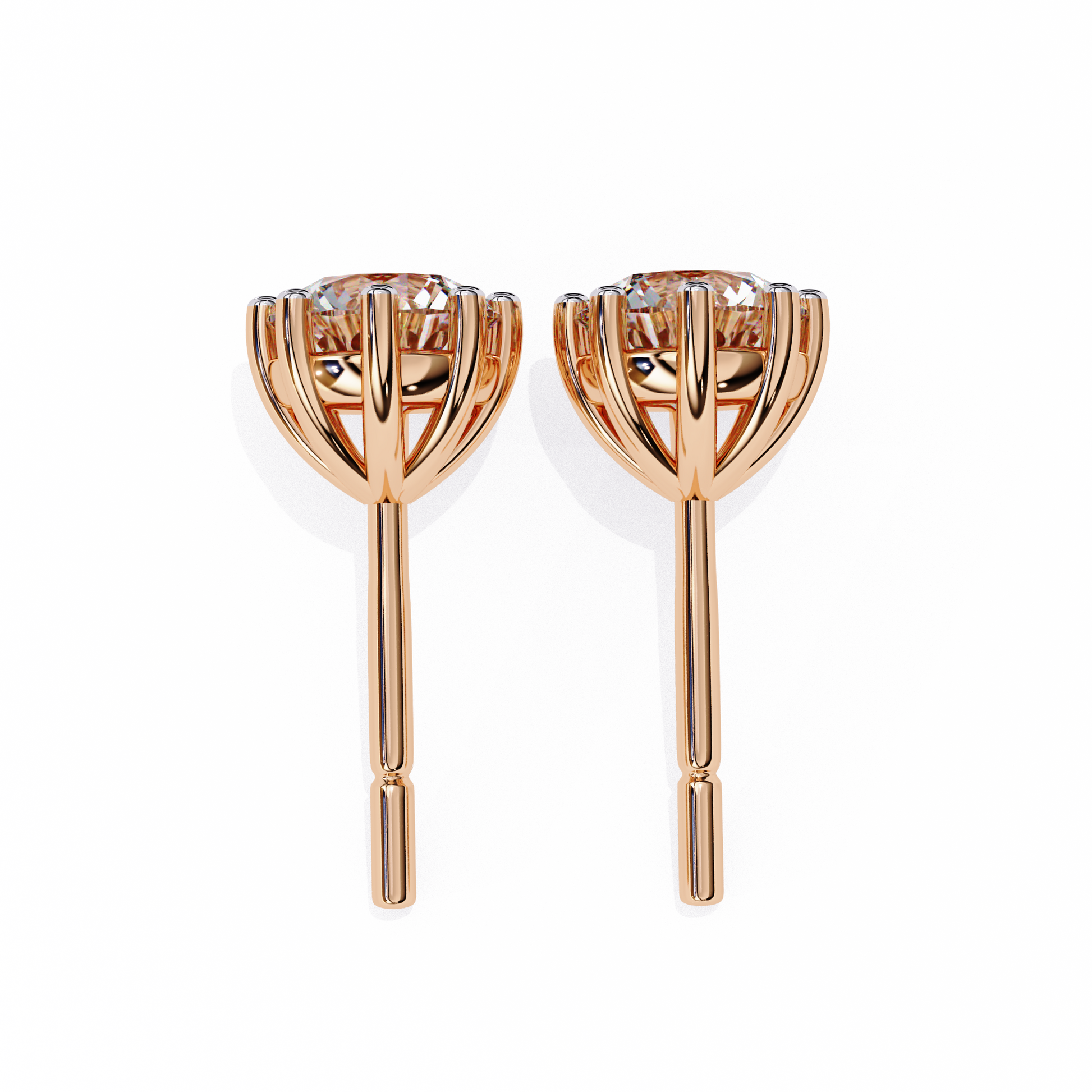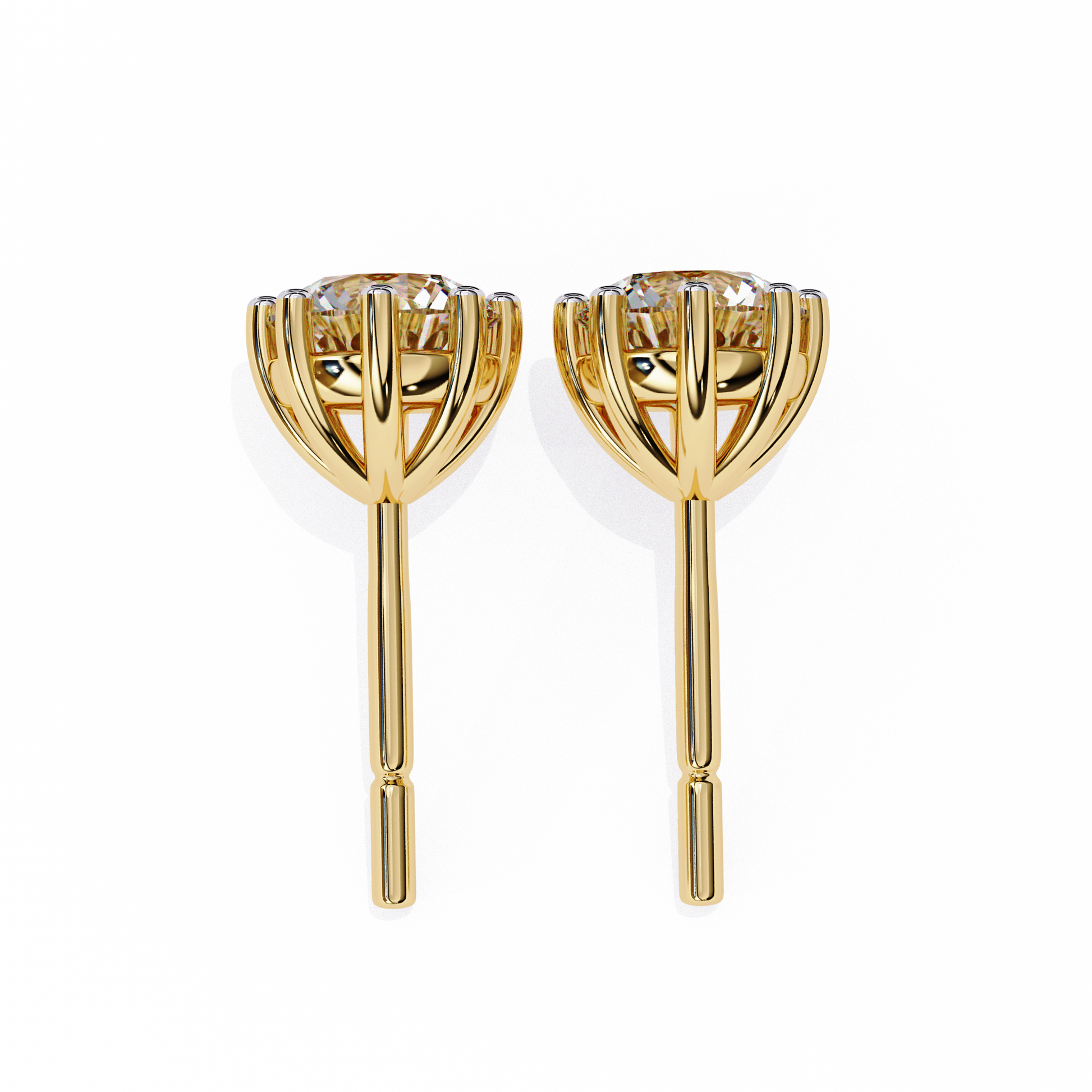 LGD Solitaire Ear Studs Round Stone (2.58ct Pair) In 14K Gold